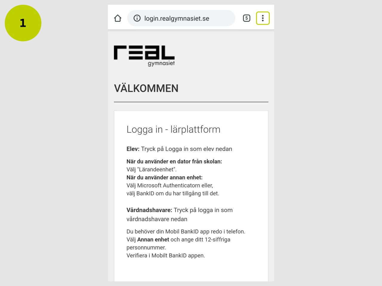 - Öppna webbläsaren och skriv in login.realgymnasiet.se i adressfältet.