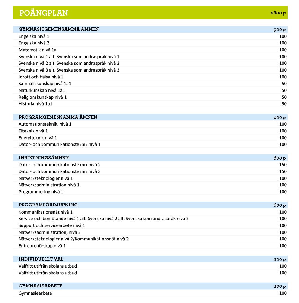 TotaltErhållna poäng efter Dator- och kommunikationsteknik