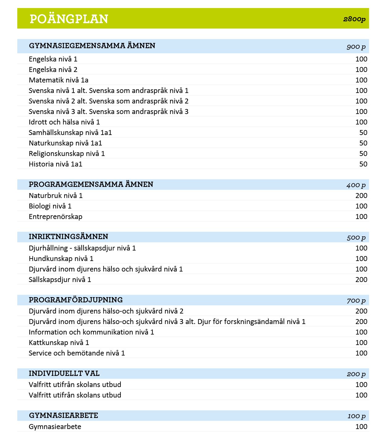 TotaltErhållna poäng från Djurvård - Djursjukvård
