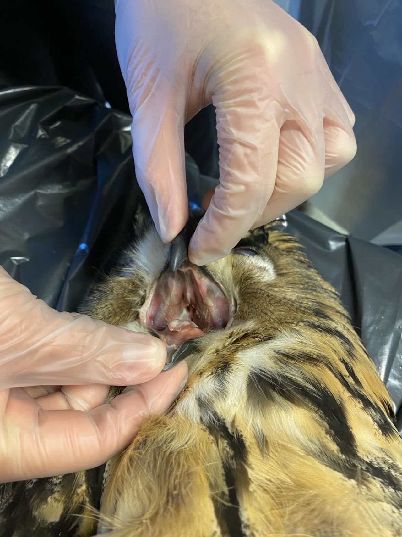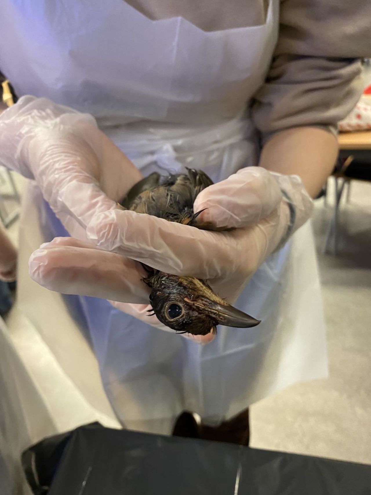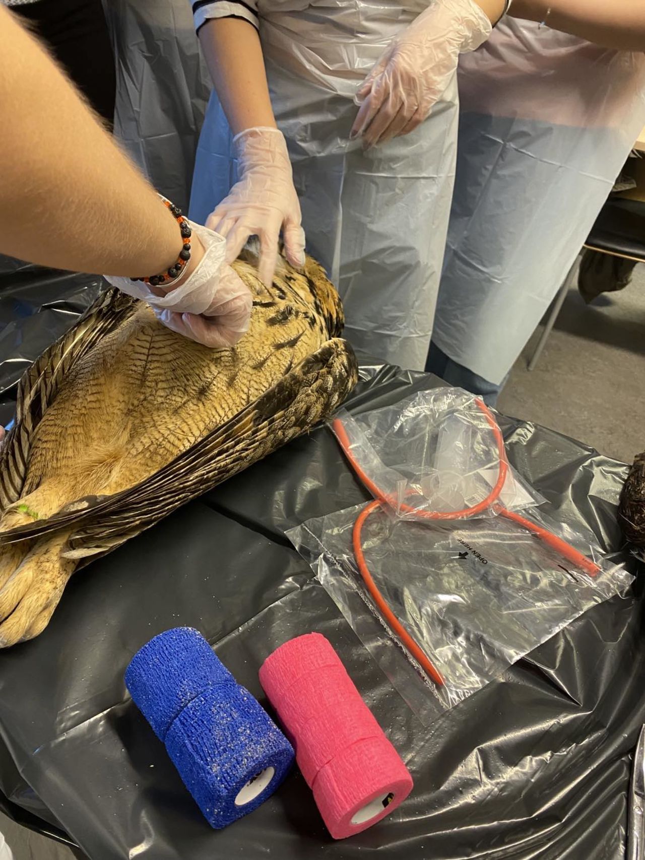 Efter föreläsningen så fick eleverna möjlighet att träna på flera olika praktiska moment på rovfågelkadaver som Kalle tagit med.