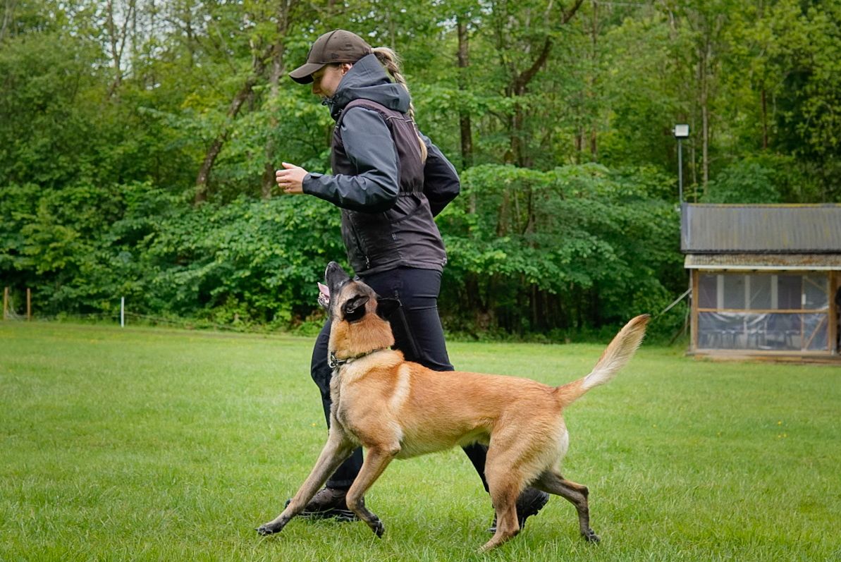 Efter gymnasiet har vägen inte varit spikrak men alltid hundrelaterad. Hon har både gjort värnplikt och jobbat som soldat innan hon hamnade i bevakningsbranschen som hundförare.