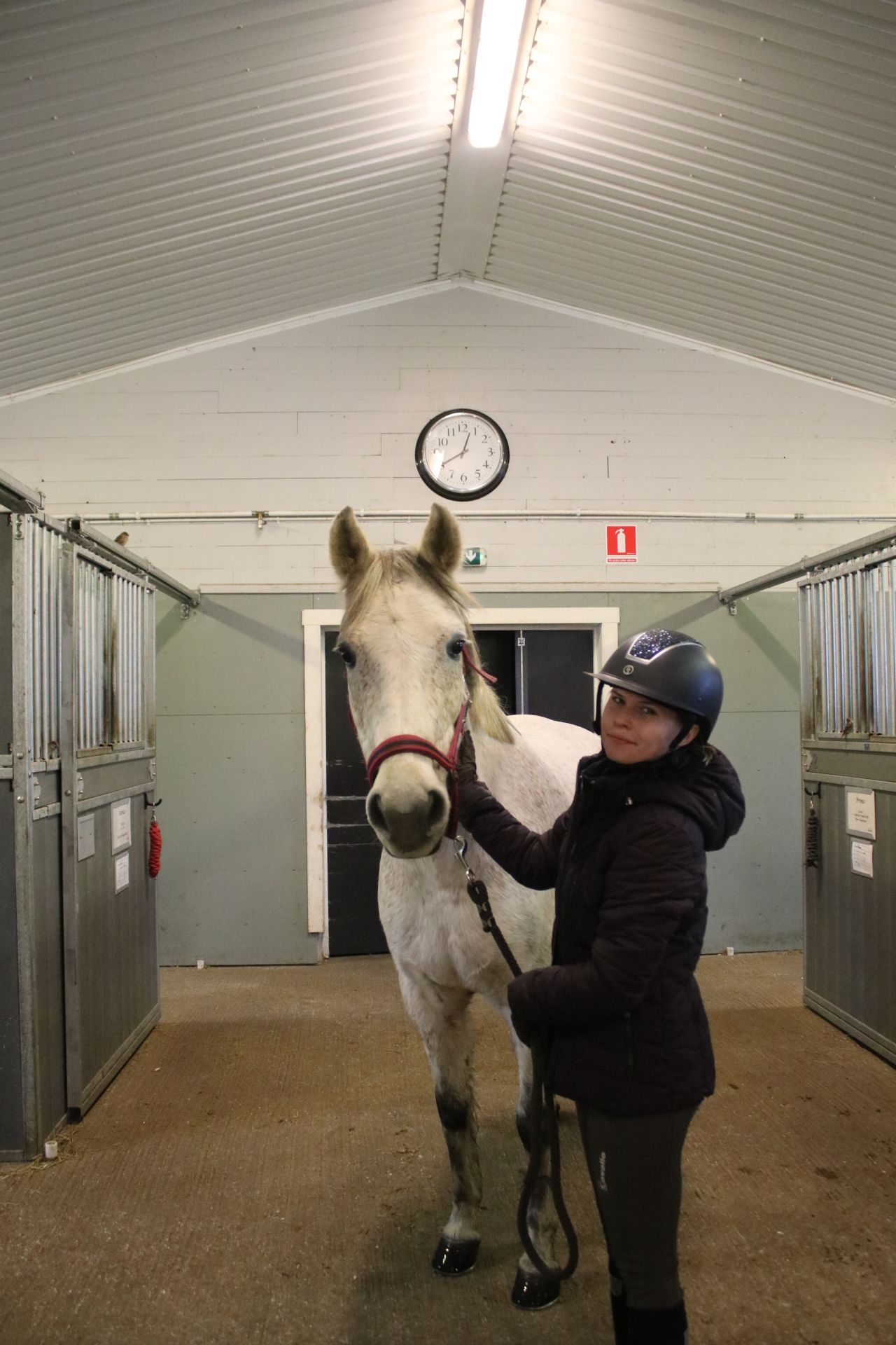 Jag går utbildningen Ridning och har alltid känt en trygghet inom sporten och det ville jag ta med till skolan. Min tanke var att jag vill utvecklas och nå längre inom ridningen och det gör jag nu med hjälp av profildagarna och APL. På utbildningen kan man plugga många olika specialister, jag vill t.ex lära mig mer om anatomi, hästens kropp, sjukdomar och hästmassage. Sen går vi några ungdomskurser och övar på ledarskap bland ungdomar som kommer att hjälpa mig i framtiden.