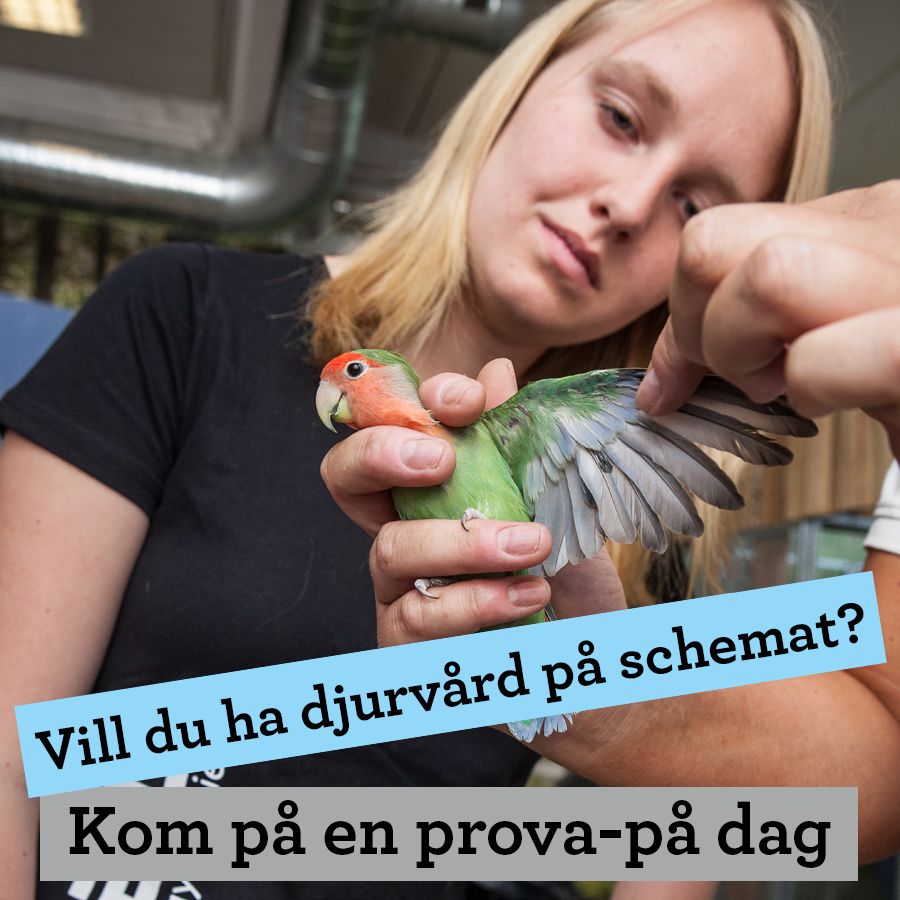 Gillar du hundar, katter och andra smådjur? Här lär du dig om djursjukvård, hantering, hälsa, hygien och bemötande. Du kan till och med diplomera dig för läkemedelshantering och bli djurvårdare nivå 2 eller få zoohandelscertifikat