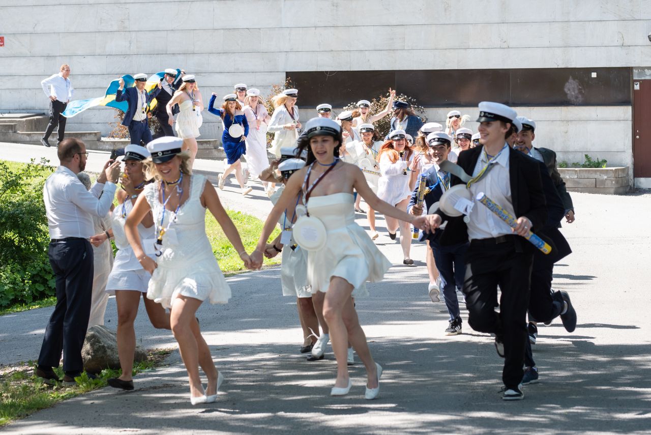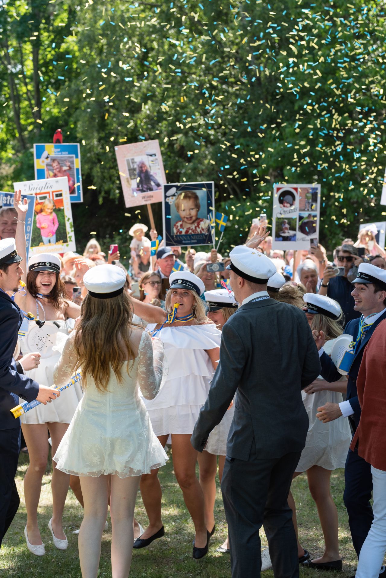 När eleverna sedan sprang ut, möttes de av jubel, skyltar och lyckliga rop från nära och kära. Ett ögonblick som rymde både avslut och början – för dem, och för oss som fått följa deras resa.